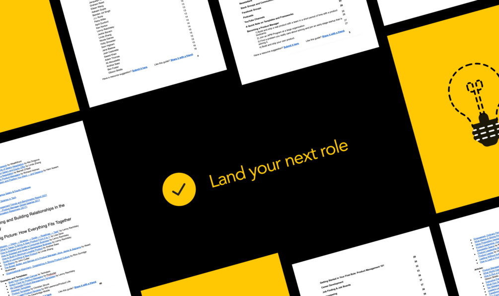 Product management is one of the most challenging careers because it is so undefined. Don't waste another minute Googling aimlessly and bouncing from resource - I've done hundreds of hours of work over the past year so you don't have to. Over 2000 curated resources - articles, examples, templates, podcast episodes, and YouTube clips - all in one place.